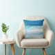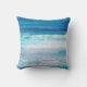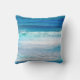 Pillow printed with abstract ocean scene in aqua, blue and white, from original digital photo with a watercolor effect.
