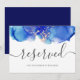 This reserved seating wedding sign is a chic way to inform guests about reserved seats at your ceremony. An elegant watercolor texture lines the top of the wedding sign in pretty shades of turquoise blue, indigo, and shimmery gold. Pretty charcoal gray calligraphy reads "reserved" with flourishes that extend off the edges of the card. Below the calligraphy, edit the text to indicate for whom the seat is reserved (or delete if unneeded). Matching wedding signage and decor is available in our Mystical Modern Ink Wash wedding collection.