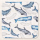 Watercolor Whales Square Paper Coaster