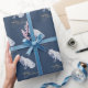 Hand-painted watercolor white arctic foxes on elegant winter wrapping paper sheets in classic navy