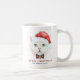 Merry and bright! Celebrate the holidays with this cute cat theme mug. It features watercolor illustrations of a white British shorthair cat wearing a Santa hat and Christmas bow tie. Personalize by adding names, dates or messages. This holiday white British shorthair cat mug will be perfect as a gift.
