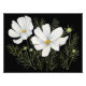 Elevate your décor with this stunning watercolor illustration inspired by the beauty of white cosmos flowers. Designed by Farida Greenfield, this piece showcases the elegance and simplicity of nature. The plain black background highlights the charm of the blooms, making it a lovely addition to any space.