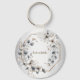 Watercolor White Flowers Golden Frame Silver Teal Keychain