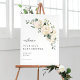 Welcome guests to your event with this customizable baby shower welcome sign. It features watercolour floral bouquet of white roses and hydrangeas with greenery accents. Personalize by adding your event details. This floral welcome sign si perfect for spring and winter baby showers. Matching items are available.