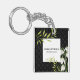 Watercolor White Snowdrops and Laurel Damask Keychain