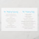 Double-sided simple single wildflower style watercolor art on a white background wedding programme. Part of the wildflower art watercolor wedding stationary set. Pretty bright blue and grey shades. Edit this wedding programme with your own name, dates, ceremony wording, wedding party attendants and thanks . Simple yet elegant program simply replace sample text with your wedding information details and fold programs in half on delivery. PLEASE NOTE you need to ensure your text is not longer than the template text as this may run over the page folding. Modern and romantic wedding ceremony program. Painting and design by Sarah Trett.