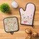 Watercolor Wildflower Garden Floral Name Monogram Oven Mitt & Pot Holder Set