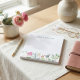 Elevate your desk with this gorgeous custom notepad design featuring an exquisite hand-painted watercolor border of lush botanicals and delicate florals. The bottom edge showcases soft green leaves, pink hydrangeas, and tiny red berries, creating a natural, peaceful frame. Above the ample writing space, your name is elegantly scripted in a light, flowing font, making this a chic and personalized stationery must-have.