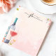 This personalized notepad features a watercolor wine bottle and glass with soft pastel florals, creating a stylish and elegant design. Perfect for wine lovers, entertaining enthusiasts, and those who appreciate sophisticated stationery. Customize the text at the top for a unique touch, making it ideal for journaling, note-taking, or gifting.