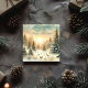 Watercolor Winter falling snow landscape Holiday Card