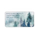 Winter themed return address labels - easy to personalize and dress up your mail for the holiday season. Your name and address are lettered in elegant, uppercase typography with a misty watercolor forest scene of fir trees.