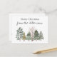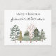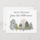 This simple and elegant, yet festive Christmas holiday postcard features a cozy watercolor design. An image of a winter forest is placed across the bottom, with various trees sprinkled with snow. A sample family name and Christmas greeting are printed at the top. You can personalize the postcard to include your own custom name or text.