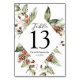 Watercolor Winter Green Pine Tree & Pine Cone Table Number