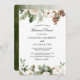 Watercolor Winter Green Pine Tree & White Flowers Invitation