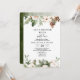 Watercolor Winter Green Pine Tree & White Flowers Invitation