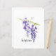Paper for scrapbooking and other paper crafts features pretty botanical style watercolor painting of hanging purple wisteria in full bloom, with text on white background