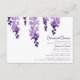 Watercolor Wisteria Wedding Rehearsal Dinner Enclosure Card features elegant watercolor wisteria flowers in soft lavender and purple with green leaves on a white background with your Rehearsal Dinner information to the right. Part of a wedding suite designed for you by © Evco Studio. Copy and paste the link for more products www.zazzle.com/store/evcostudio