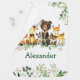 Watercolor Woodland Animals Baby Blanket. Baby Animals include Bear, Deer, Moose, Raccoon, Bunny Rabbit, Fox and Owl on eucalyptus leaves and forest greenery. Add Name.
