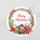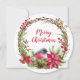 Watercolor Wreath Poinsettia & Bird Christmas Holiday Card
