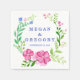 This napkin design feature is a beautiful wreath composed of leaves and flowers in various shades of colors.