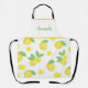 A modern and fresh looking apron with a pattern of watercolor lemons and a customizable name.