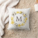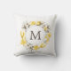Watercolor Yellow Magnolia Wreath Monogram Throw Pillow