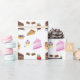 Fun watercolor cakes, pies, fruit tart, chocolate candy, strawberries.