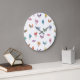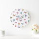 Large clock decorated in a watercolour chicken illustrated pattern by Harlequin Herd