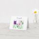 A pretty colorful bunch of flowers including violet in watercolour on a white background. "Farewell" at the top. Inside "You will be missed so much" on the back in fuchia "Till we meet again"