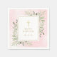 Featuring delicate watercolour leaves with an elegant gold crucifix on a pretty pink mottled watercolor background. This chic christening napkin can be personalized with your special event details in modern typography. Designed by Thisisnotme©