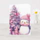 Watercolour Penguin & Pink Christmas Tree Card