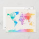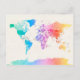 Political world map featuring watercolour filled countries on an off-white aged background. The map includes country names, borders and sea names.