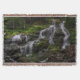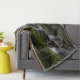 A quality printed throw has its advantages. This is a much finer weave throw than its loopier cousins, and though lighter, it is worth the investment for custom room accessorizing. The back is much prettier than the typical brown, and the fringe on the long sides very vivid, the selvage nicely done. Before photographing, I washed the throw in cold water, delicate, with a thicker woven throw the same size. On tumble dry low, this throw was dry in half the time as the other. This is a very practical quality if you use throws for furniture covers or to wrap up in frequently. The sleekness of the fabric makes it a great layer for accenting or protecting without the feeling of sitting on too much stuff. Perfect for napping or when you feel a light chill coming on. The color printing is beautiful and on this fabric, matched the design and color of my Photoshop image. This is an advantage for blending room fabrics and colors. The fringe on the short sides prints the colors from the design image and therefore varies from the side fringe. I streaked a white fractal line through the plaid pattern to give the illusion of weaving. This printed as crisp as an illusory thread, and put some white in the short side fringe, showing another advantage of print vs loomed- for artistic purposes, line lines, detail, and color integrity can be planned and preserved. My loomed throws have color limitations and more of a needlepoint texture. Print throws reproduce an exact image. The throw felt a little stiff straight out of the package, but this went away in the first delicate wash. Of course I searched the wash water for ink or bleeding and there was none.