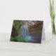 A Water Fall shot in the Fall with green moss, rocks and leaves shot close up that"s on a Birthday Card.