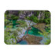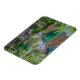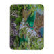 Painting of view from above of waterfalls cascade and wooden path with tourists in Plitvice national park, Croatia. Mountain forest waterfall landscape.