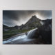 Landscape photo of a small waterfall on the islands of Lofoten in North Norway, Scandinavia.