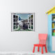 Beautiful flowing waterfall view, faux window scene, for a windowless office wall. Fun, realistic optical illusion scenic poster for an office or study wall.