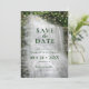 Announce your wedding date with this beautiful enchanted forest themed save the date card, featuring a photo of a lovely silky-white waterfall, decorated with string lights.