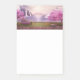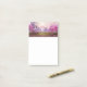 Sticky notes with a scenic image of a peaceful purple lake. Surrounded by lush cherry trees and waterfalls.