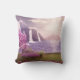 Pillow with a scenic image of a peaceful purple lake. Surrounded by lush cherry trees and waterfalls.