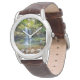 The watch looks really great! Very sharp and well done. The leather band is really nice, though for a man's watch I think it should be longer. Unfortunately, it isn't big enough for my husband's wrist but I will get a replacement because he is very excited to wear it!