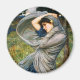 John William Waterhouse Boreas magnet. Oil Painting on Canvas from1903. The English artist John Waterhouse often focused on mythological themes. Boreas is a work dedicated to the Greek god of the north wind and features a young girl in a blue dress walking through a windswept field of daffodils and pink blossoms. The wind catches in her gray shawl and she lifts her arm to cover her head, which is adorned by dark brown hair and a freshly plucked daffodil. A great gift for fans of J.W. Waterhouse, Greek myth, the Pre-Raphaelites, mythological painting, and English Romanticism.