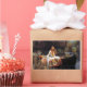 John William Waterhouse The Lady of Shalott . Oil painting on canvas from 1888. The Lady of Shalott is a beautiful Pre-Raphaelite painting of a scene from Alfred Lord Tennyson’s poem of the same name stickers. The painting depicts the doomed Lady of Shalott sailing towards Camelot in a small boat draped with a beautiful red tapestry she wove while falling in love with Lancelot. In the boat sit three candles and a crucifix from which the girl looks away. The lady herself is clothed in a flowing light blue medieval dress embroidered with gold. Her hair is light auburn and she holds the chain of the boat as it presses away from the dock into the reeds and lily pads beyond. A great gift for fans of John William Waterhouse, the Pre-Raphaelites, Romantic English painting, and Arthurian Legend.