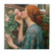 John William Waterhouse The Soul of the Rose tile. Oil painting on canvas from 1908. English painter John Waterhouse found inspiration in mythical and literary themes. The Soul of the Rose is inspired by the Alfred Lord Tennyson poem by the same name, and features a young redhead in a blue dress standing in a country garden. She lifts a pink rose to her face, closing her eyes to take in its fragrance. A great gift for fans of J.W. Waterhouse, the Pre-Raphaelites, literary painting, and romantic art.