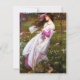 John William Waterhouse Windflowers invitations. Oil painting on canvas from 1902. Pre-Raphaelite John William Waterhouse frequently painted literary themes, and Windflowers is a beautiful example of the artist’s lifelong fascination with poetic heroines. The painting features a young woman with dark black hair standing in a field of wild flowers as the wind whips across the scene. She wears a white dress with purple sleeves, skirt and stitching. In her apron she carries pink, purple and red flowers which she holds close against the wind. A great gift for fans of J.W. Waterhouse, the Pre-Raphaelites, and English Romantic painting.
