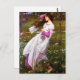 John William Waterhouse Windflowers. Oil painting on canvas from 1902. Pre-Raphaelite John William Waterhouse frequently painted literary themes, and Windflowers is a beautiful example of the artist’s lifelong fascination with poetic heroines. The painting features a young woman with dark black hair standing in a field of wild flowers as the wind whips across the scene. She wears a white dress with purple sleeves, skirt and stitching. In her apron she carries pink, purple and red flowers which she holds close against the wind. A great gift for fans of J.W. Waterhouse, the Pre-Raphaelites, and English Romantic painting.