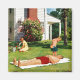 Artist: Richard Sargent | Son waters father, asleep on lawn, with sprinking can
