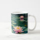 Beautiful pink waterlily flowers and pads on a pond create a lovely mug. Perfect for anyone who loves nature and flowers.