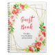 This fun and whimsical birthday party guest book features watercolor watermelon, pomegranate, strawberries, cherries and foliage on a gold geometric frame. The text combines handwritten script and serif fonts for a stylish and modern look. This is perfect for a summer rustic birthday party.