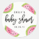 Nothing says it's summer like watermelon! The summer baby shower stickers are perfect to use as favor labels, envelope seals, and more! The stylish baby shower stickers feature a watercolor watermelon border, trendy script font, and placeholders for your custom info.